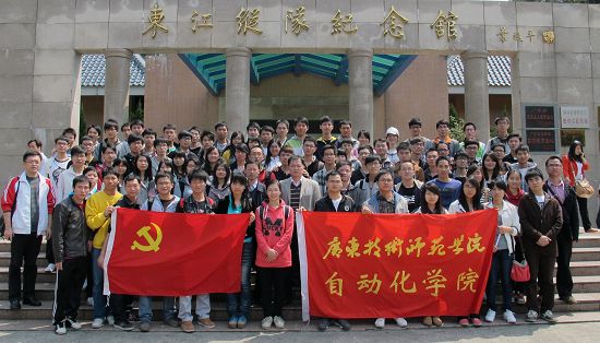 为推动“三爱一奉献”主题教育实践活动,加强学生党员的德学教育,3月25日,自动化学院党委负责人和政治辅导员组织80多名学生党员,前往惠州博罗东江纵队纪念馆举行党员入党宣誓活动。在庄严肃穆的纪念馆里,新党员面对党旗,进行了庄严的入党宣誓,老党员重温了入党誓词。宣誓仪式结束后,师生参观了纪念馆的展览,重温了革命先烈们艰苦奋斗勇于牺牲的历史,学习革命先烈的崇高精神。学生党员纷纷表示,在清明节前夕赴东江纵队纪念馆进行入党宣誓活动,自己深受教育,今后一定要继承和发扬先烈们优秀的革命传统,深入践行学院党委提出的“以德为行,以学为上”的教育思想,用最优秀的成绩纪念革命先烈。