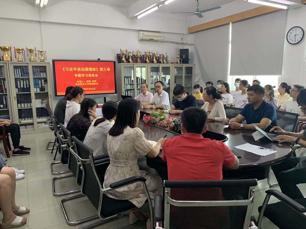余翔以《读懂习近平新时代中国特色社会主义思想的重要文献——学习〈习近平谈治国理政〉第三卷》为题,指出《习近平谈治国理政》第三卷是充分反映十九大以来习近平总书记领导全党全国各族人民进行伟大实践的最新教材,是用习近平新时代中国特色社会主义思想武装全党、教育人民、推动工作的最新教材,是我们党不忘初心、牢记使命、团结带领人民创造更加幸福美好生活的最新教材,是为世界谋大同、推动构建人类命运共同体的最新教材。余翔通过分析六个“着眼于”,详细梳理和解读了全书主要内容,特别强调深入学习《习近平谈治国理政》第三卷具有十分重要的意义。