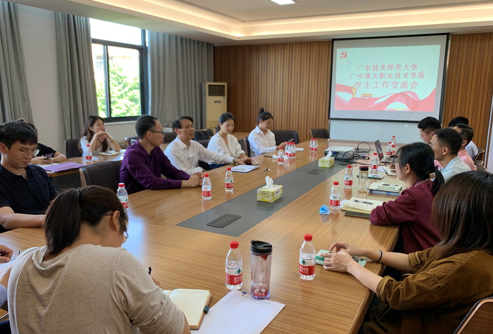 为推动加强学院思想政治教育工作队伍建设,学习借鉴学生工作先进经验,11月7日,电子与信息学院党委副书记罗旭辉率全体辅导员等一行5人赴广州康大职业技术学院进行学习交流。广州康大职业技术学院党委书记卓光琳及学生处负责人、全体辅导员参加了交流座谈。