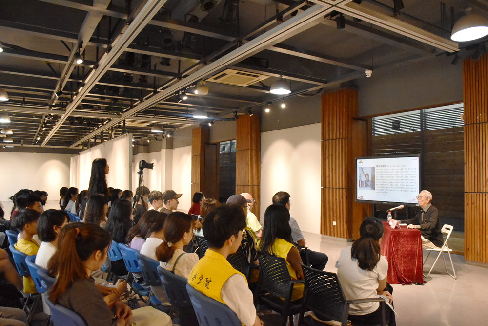 启动仪式后,学校原中文系、民族研究所韩伯泉教授应邀为我院青年学生讲专题党课。韩伯泉以党费证为载体追忆入党初心的故事,与青年学生分享他在建党90周年写下的诗《党费证之歌》以及建党100周年写下的《党的不亲谁个亲》。韩伯泉的深情讲授打动了在场师生,现场不时响起雷鸣般的掌声。美术学院党政主要负责人向韩伯泉教授赠送了由大师工坊自主研发的党建文创产品。