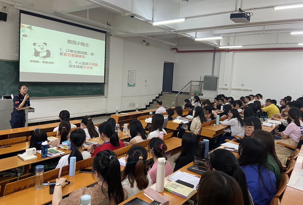 4月22日,邀请江高派出所反诈宣讲团在白云校区师生中开展防诈宣传教育活动,反诈专家民警通过文字、图片、视频和案例等形式向学生详细讲解商品交易诈骗、冒充客服诈骗、兼职刷信誉诈骗、网络贷款诈骗、冒充领导和亲友诈骗、利用网络游戏诈骗、网络交友“杀猪盘”诈骗、网络裸聊诈骗、虚拟平台投资诈骗等9种常见的电信网络诈骗的行骗方式、手段、特点、危害,以及识骗方法、技巧等内容。截至目前,广州四校区在师生中开展防诈宣传教育活动共计40场,6000余名师生接受了防诈宣传教育。