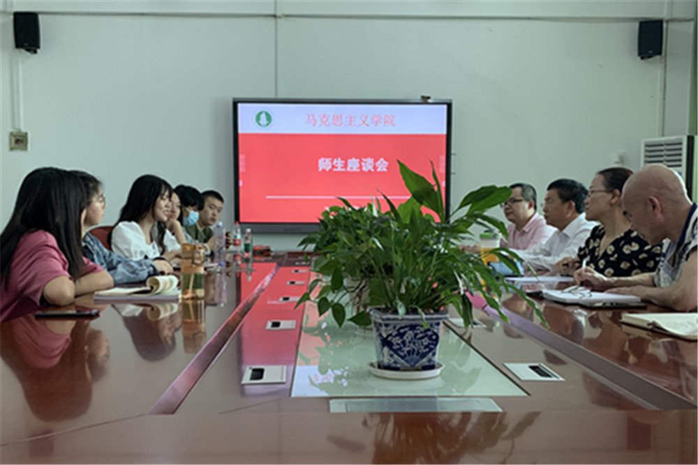 二是召开教学工作师生座谈会。4月22日,马克思主义学院在会议室举行思政课教学工作师生座谈会。房亚兵书记、曾志浩副院长、教研室主任陈曦、赵蕊,督导代表李建国以及不同专业的学生代表参加。在会议过程中,学生代表们畅所欲言,就如何提升思政课课堂吸引力提出了诸多有益的建议,老师代表对学生提出的问题一一给以了合理的解答。此次座谈会搭建起了马克思主义学院与学生之间良好的交流平台,老师和学生平等对话,加强了师生间的交流。