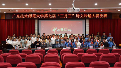 为致敬中国共产党建党100周年、礼敬中华优秀传统文化,4月28日,由教务处、校团委主办,文学与传媒学院承办的广东技术师范大学第七届“三月三”诗歌节在白云校区报告厅盛情开幕。本次活动以“百年峥嵘,歌以咏志”为主题,诗会之上,选手们各展所长,众节目精彩纷呈,点燃师生们的爱国热情,也诠释了广师大学子的情怀与担当。河源校区以线上直播的方式同步进行。