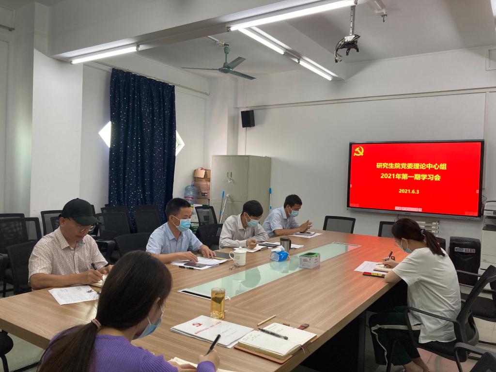 6月3日,为进一步推动党史学习教育走深走实、入心入行,引导全院党员同志切实加强党史学习教育,研究生院党委理论中心组举行2021年第一期学习会。研究生院党委书记姚洪略主持并讲话,研究生院院长陈泳竹、研究生院副院长刘卫东作了主题学习发言,研究生院全体党员同志参加学习会。