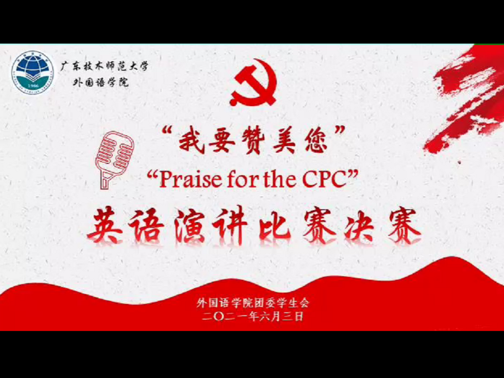 “我要赞美您”英语演讲比赛是2021年广师大外语文化节系列活动之一,外国语学院严格落实疫情防控措施,将党史学习教育与专业学习相结合,线上举办决赛,丰富学习载体,推进党史学习教育走深走实走心。