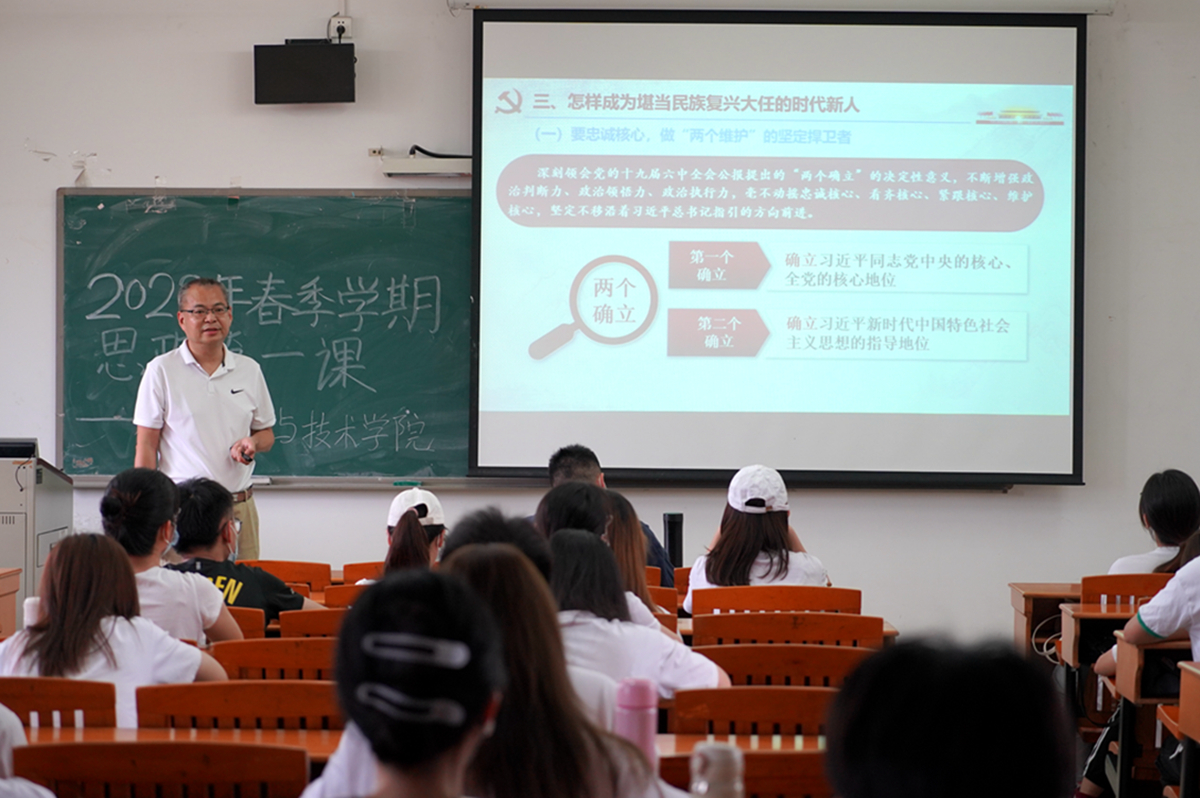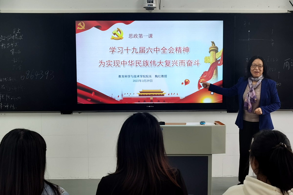 为深入学习党的十九届六中全会精神和党的百年奋斗历史经验,3月22日和29日,教育科学与技术学院书记院长分别在白云校区为同学们讲授了2022年春季学期“思政第一课”。学院学生党员、入党积极分子以及学生干部代表现场聆听授课。