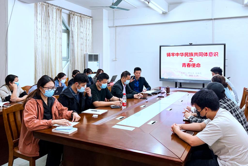为贯彻落实学校党委《关于做好2022年春季学期党委书记、校长和各学院党组织书记、院长上第一堂思想政治理论课工作的通知》要求,扎实做好疫情期间学生思想政治教育工作,3月25日,民族学院党总支书记黄文浩、院长骆桂花在东校区第一教学楼1411会议室为民族学院21级研究生及全体学生党员讲授题为《铸牢中华民族共同体意识之青春使命》的2022年春季学期“思政第一课”。