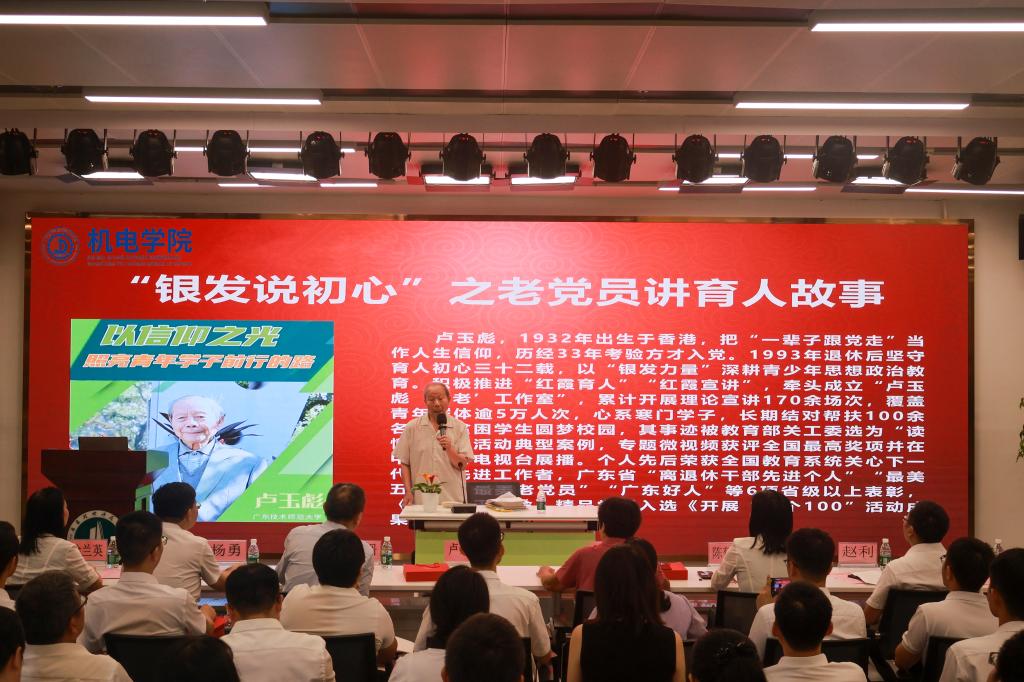 今年93岁高龄的卢玉彪同志向全体师生分享他的育人初心。从1952年递交了第一份入党申请书,到1985年加入中国共产党,再到1993年退休后坚守育人初心。他对全体师生提出三点建议,一是要多读书,读好书,在书籍中充分汲取养分。二是要勤锻炼,身体好,为祖国健康工作50年。三是要练本领,长才干,为中华民族的伟大复兴贡献力量。