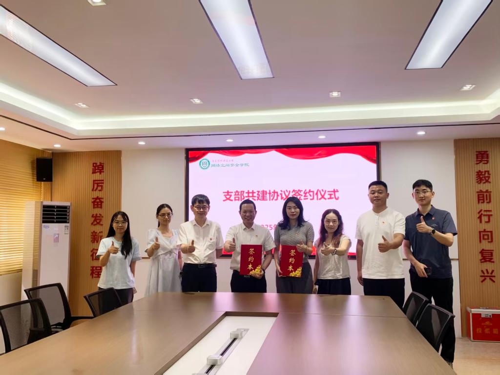 肖茵茵首先代表学院对张军文一行的到来表示热烈欢迎。双方分别介绍了基层党组织的建设情况,希望通过结对共建这一平台,共同探索在志愿服务、社会实践、就业实习等领域的合作模式,实现资源共享、优势互补,为残疾人群体提供更多实质性的帮助和支持。张军文表示,将以此为契机,进一步深化该支部与网安学院的沟通交流,打造“技术+志愿”的合作方式,进一步推动科技助残事业发展。会上,广州市残疾人福利基金会党支部与网络空间安全学院网安卫士科普党支部完成了支部结对共建签约仪式。