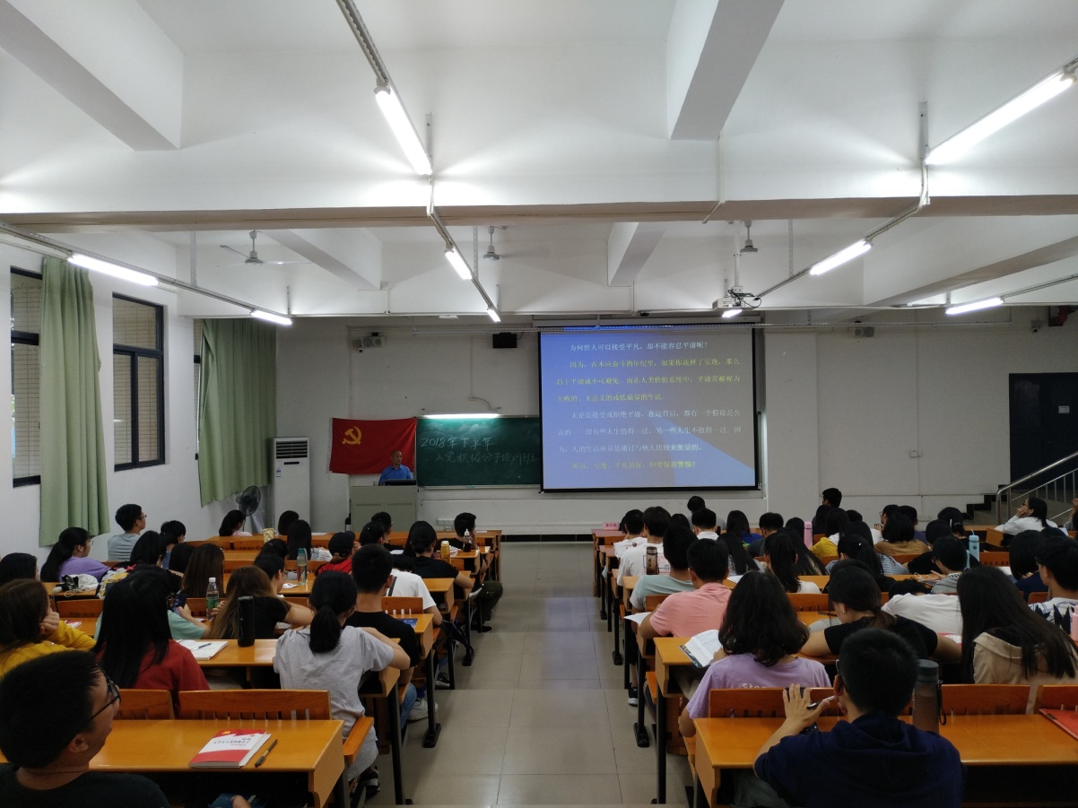 为加强对入党积极分子培养教育,提高我校党校培训质量,深化党的理论教育和学习。11月15日下午,我校副校长潘自勉教授在白云校区三教114为我校2018年下半年入党积极分子9班作了题为《立鸿鹄志,做奋斗者——基于习近平有关青年与教育思想的若干思考》专题党课培训,培训会由教育科学与技术学院党委书记林启词主持,各学院辅导员代表和150余名学员参加培训。