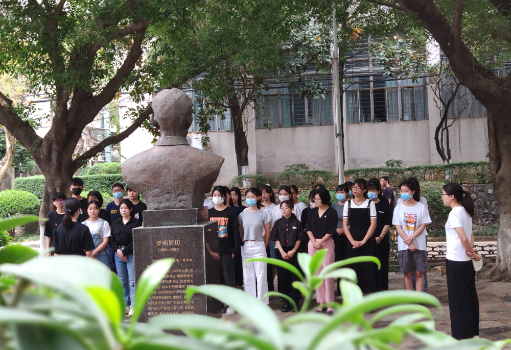 4月4日,清明节,美术学院艺心党支部等多个党支部的三十多名师生肃立在东校区罗明同志塑像前,缅怀著名老一辈革命家、学校首任院长罗明同志。美术学院党委副书记王明粤、辅导员、学生党员和入党积极分子代表参加了此次活动。