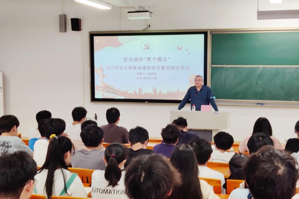 为教育引导学生深刻学习领会党的十九届六中全会精神,坚定理想信念,加强党性修养,5月17日,自动化学院党委书记杨延军为2021级入党积极分子讲授专题党课。