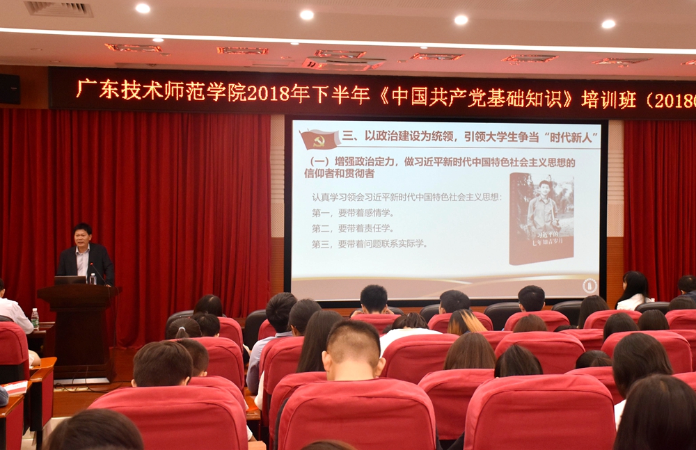 为深入学习贯彻习近平总书记视察广东重要讲话精神,正确理解和把握党的十九大提出的“培养担当民族复兴大任的时代新人”的目标任务,11月15日,学院党委书记凌靖波来到白云校区,为入党积极分子作“学重要讲话,做时代新人”的专题党课。
