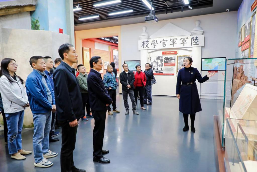 15日,杜安国一行首站来到罗明故居。作为学校办学前身——广东民族学院的首任院长,罗明同志既是中国共产党早期革命活动家,也是学校“艰苦创业、自强不息”传统精神的奠基者。在罗明故居的史料陈列前,杜安国一行驻足凝视泛黄的文献与珍贵的实物,认真聆听罗明同志投身革命、兴办教育的峥嵘往事,深切感悟先辈“为党育人、为国育才”的初心使命,进一步坚定了传承校史文脉、办好新时代高等教育的信念。在三河坝战役纪念园,杜安国一行在纪念碑前肃立默哀、重温入党誓词,并在我校2018届旅游管理专业校友、三河坝战役纪念馆讲解员江思萍的带领讲解下参观史料陈列、聆听英勇事迹,学习革命先烈顽强拼搏、敢于斗争、艰苦奋斗的革命大无畏精神。