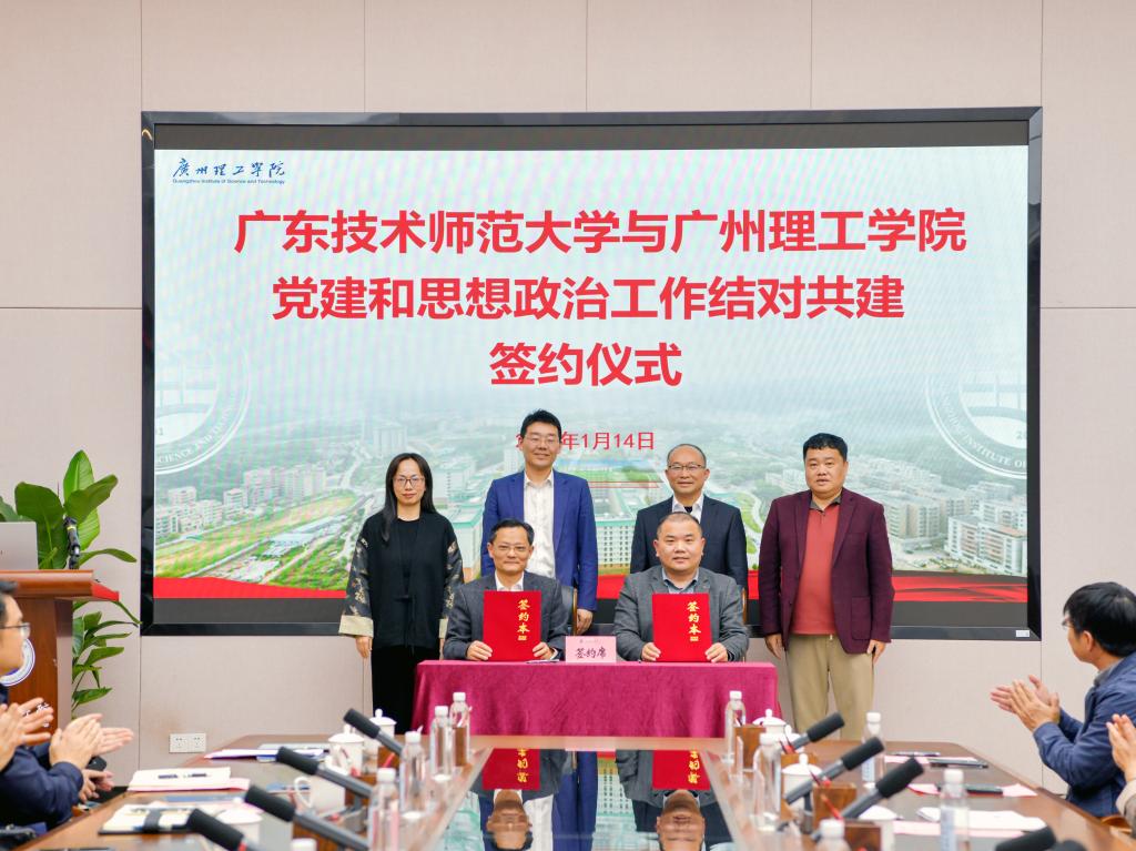 1月14日下午,我校与广州理工学院党建和思想政治工作结对共建签约仪式在广州理工学院白云校区举行。学校党委书记王兵、党委副书记杜安国,广州理工学院党委书记黄圣诚、校长胡社军、党委副书记张志红及两校相关职能部门负责人、结对共建工作组成员等参加签约仪式。会议由胡社军主持。